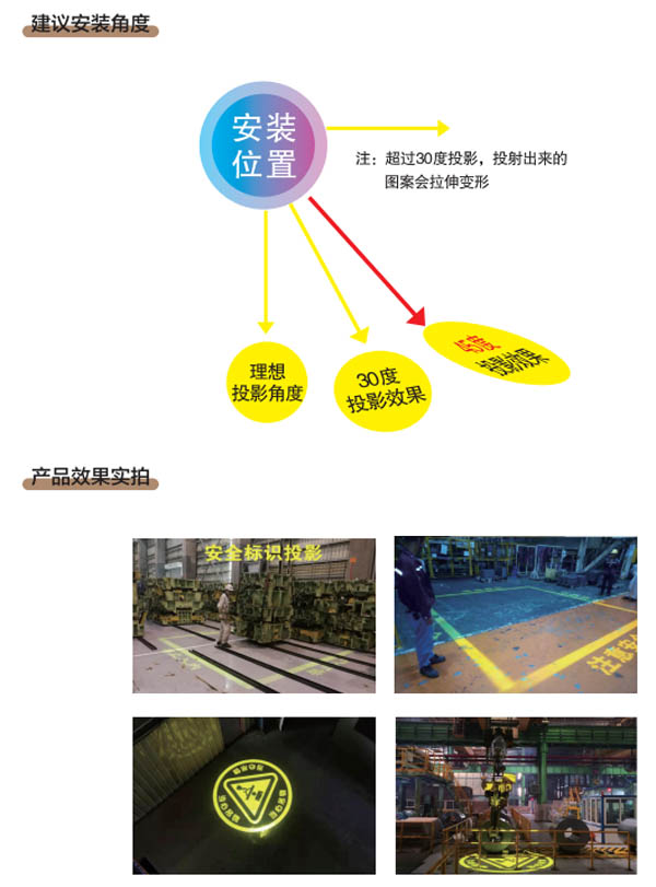 ABTY系列工業安全警示儀我公司自主研發,產品具有智能化,信息化等科技技術。是針對工業特殊環境和使用條件而單獨設計的,產品結構強度高、耐高溫、防水防塵、抗震、防掉落等特點。采用進口光源,使用壽命長、投影距離遠等優點?勺孕卸x警示區域大小和形狀、警示內容(如:“注意安全”、“危險區域”)等。廣泛用于冶金、有色、化工、煤礦、建筑等行業,是現代廠礦企業安全生產的重要輔助產品,為您的安全生產保駕護航。