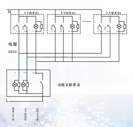 2.司機如同意登機,按動應答按鈕:聯系盒“允許上下車”指示燈亮,蜂鳴器長響;司機室主機顯示文本提示“有人正在上下車”(或語音);同步切斷大車行走控制回路。