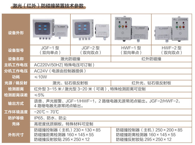 激光(紅外)防碰撞裝置技術參數 瀏覽:1252